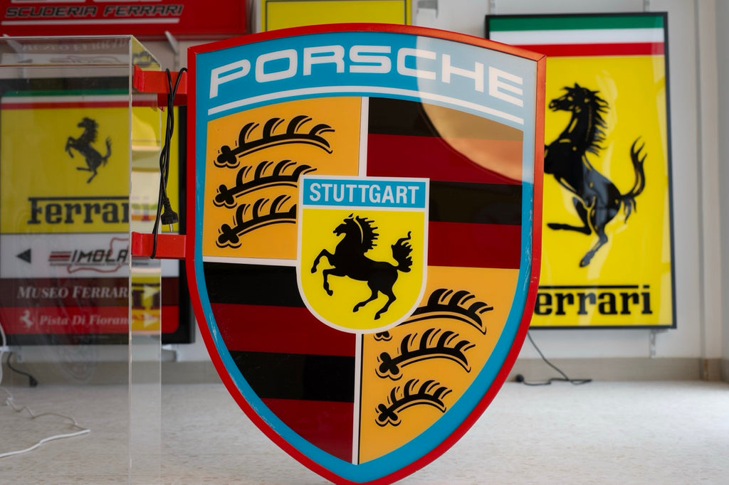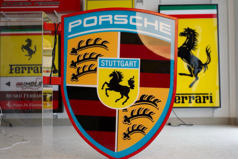 Show off your passion for Porsche with this bold, illuminated Porsche Crest Sign. Featuring vivid colors, crisp detailing, and a bright internal glow, this premium display piece brings motorsport heritage to any space—garage, showroom, office, or man cave.