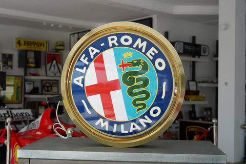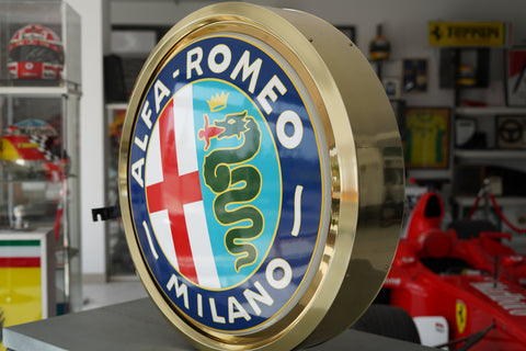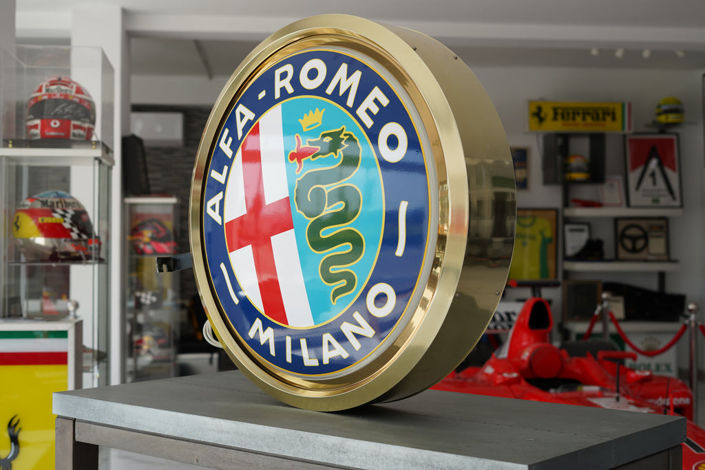 A striking and highly decorative early 2000s Alfa Romeo illuminated dealership sign, executed in the marque’s iconic roundel form and presented here in exceptional, display-ready condition.